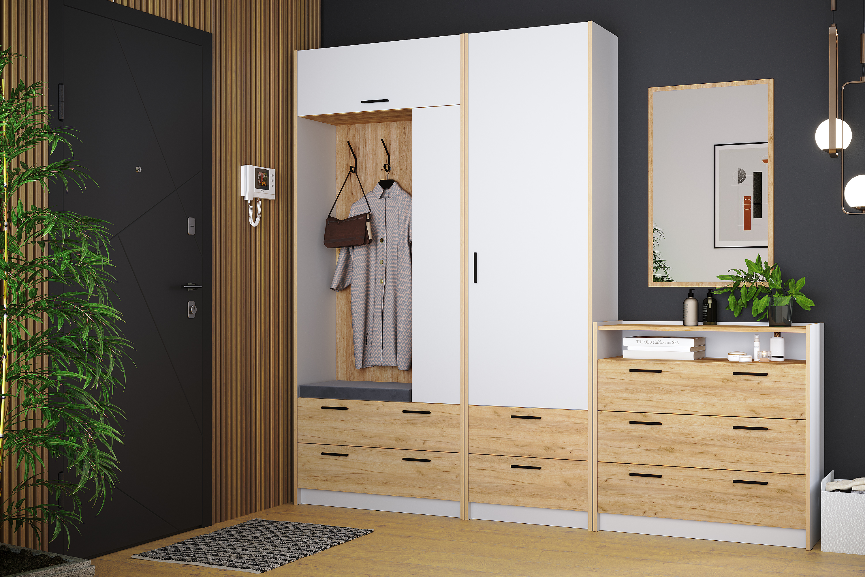 Шкаф для одежды из новой коллекции Оттавия представлен в двух цветах на выбор – белый и антрацит. Шкаф отлично подойдет в прихожую или гостиную для любого современного интерьера, как скандинавского, так и урбанистического.