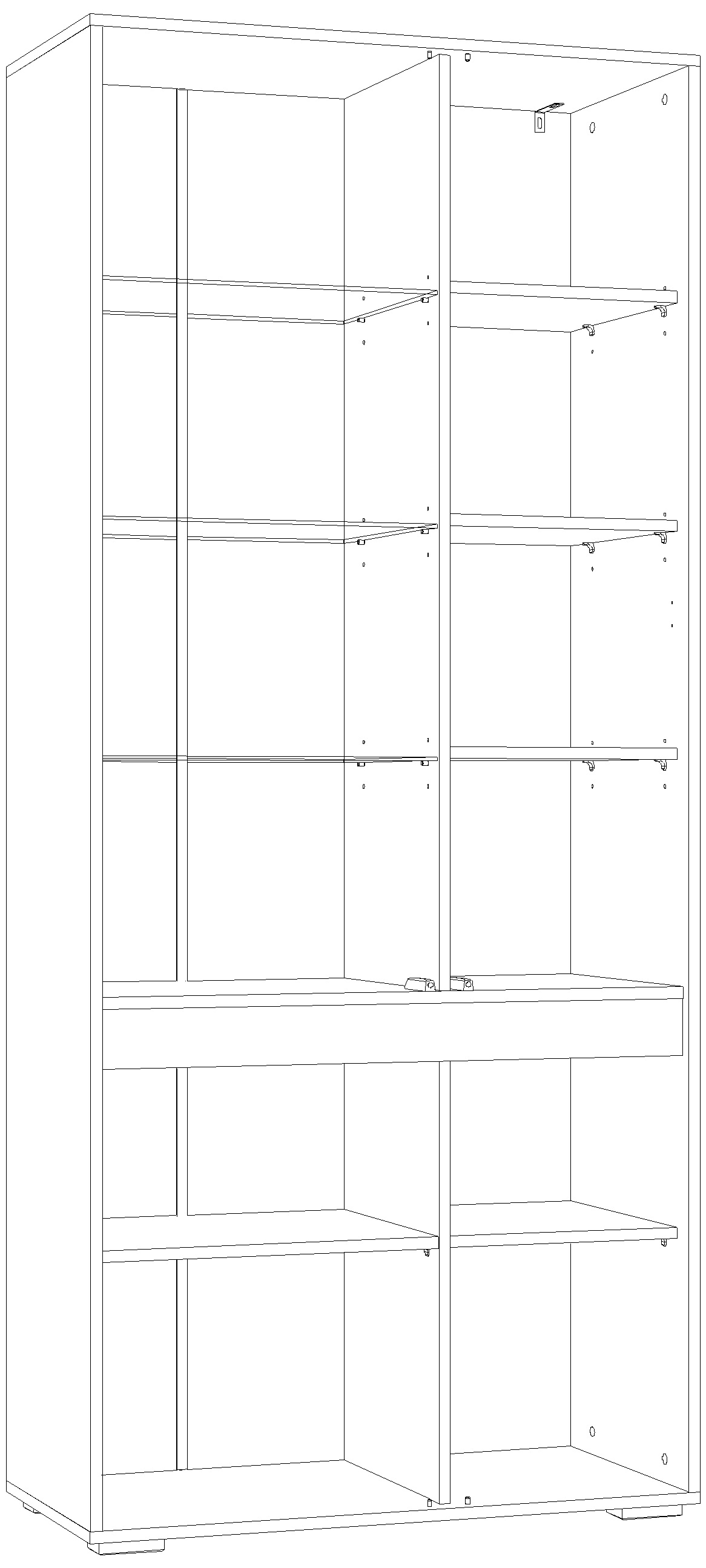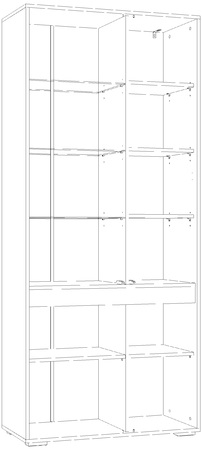 Предназначен для одновременного хранения посуды и других вещей и предметов различного назначения. Представляет собой каркас из панелей ЛДСП со стяжной вертикальной панелью, со стяжными и съемными полками. Каркас шкафа универсальный, может быть собран с секцией со стеклянными полками (фасадом-витриной) как на левую, так и на правую стороны. Двери не универсальные: левые или правые.