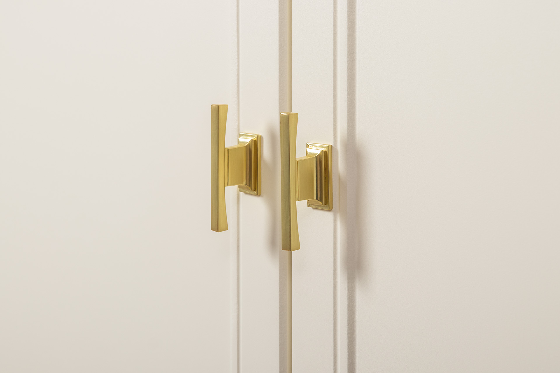 Изящные линии, глубокая фрезеровка фасадов из МДФ и благородные оттенки. Утончённая «Слоновая кость» и изысканная «Олива Шагрень» с глубоким зелёным тоном — создают атмосферу уюта, тепла и благородства. Металлические ручки и опоры золотого цвета придают мебели утончённый блеск, а петли и направляющие с доводчиками обеспечивают плавное и бесшумное закрытие фасадов.