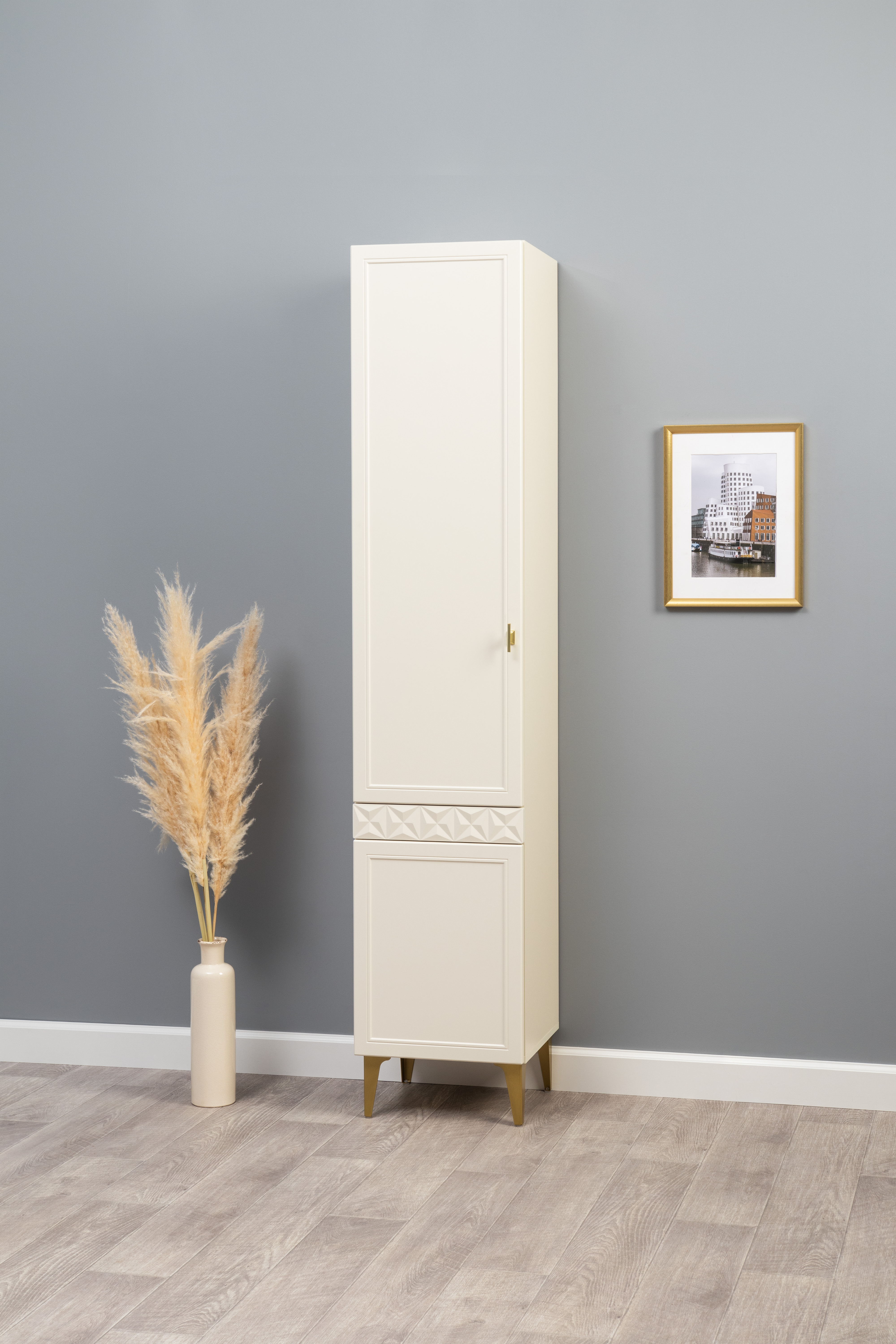 Шкаф-пенал Марион 16.333.01 слоновая кость С341 PE, слоновая кость 6898 ПВХ (собирается на любую сторону)