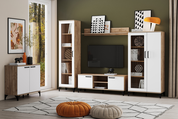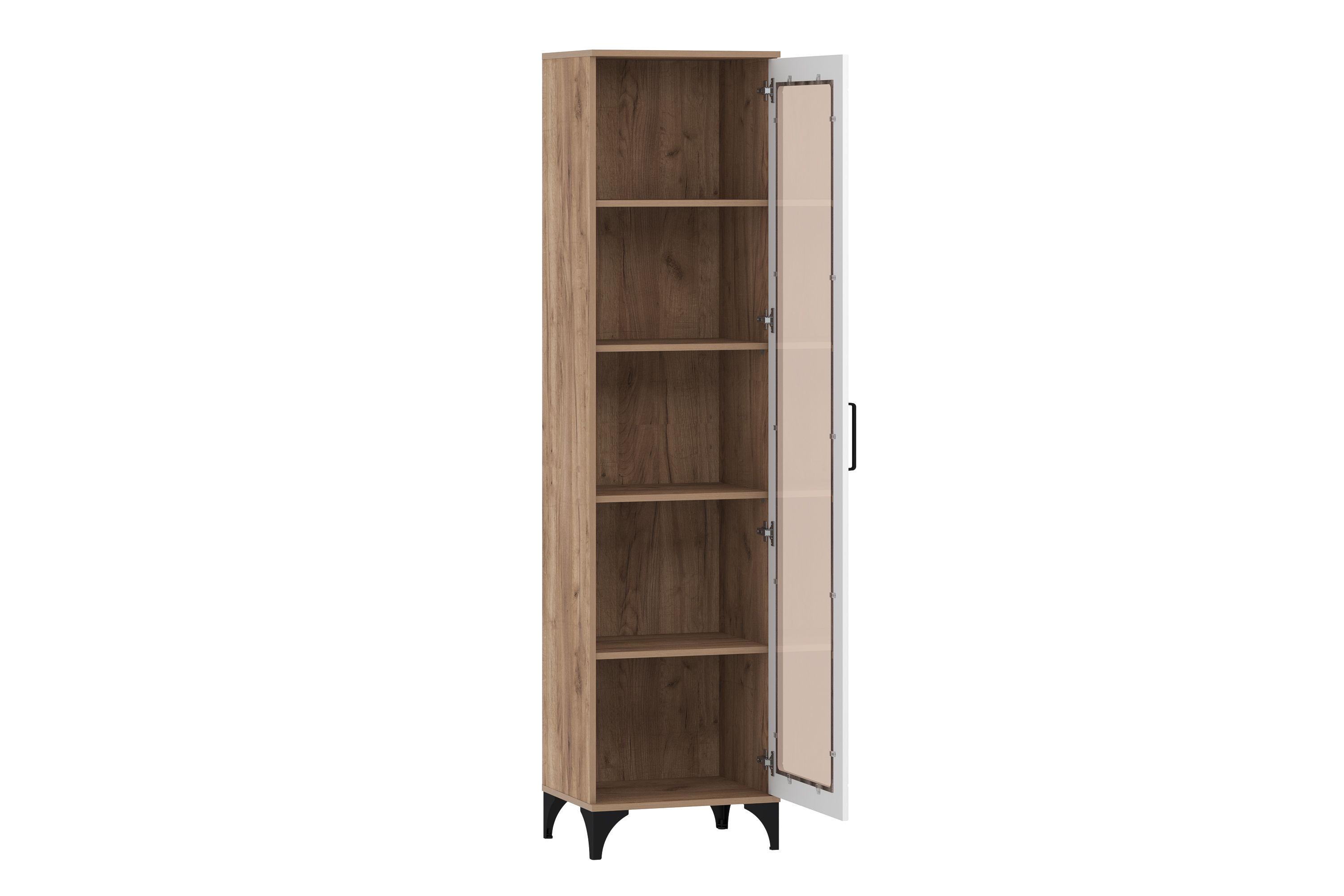 "МАРСЕЛЬ" - оригинальная коллекция мебели, которая сделает ваш интерьер современным и стильным. Благодаря высоким ножкам и длинным ручкам он привнесет в комнату нотку ретро-атмосферы. Теплый оттенок дерева сделает комнату более уютной. Витрина является элементом коллекции, характеризующейся гармоничным сочетанием эффекта дерева с темными и светлыми фасадамии. Мебель из коллекции может быть оформлена в современном стиле, с элементами индустриального и ретро стиля. Это идеальная коллекция для любителей нетривиальных решений в интерьере, она не перегружает, но станет отличным дополнением к оформлению помещения. Шкаф-пенал "Марсель" предназначен для хранения или демонстрации различных вещей и предметов. Изделия универсальной сборки: дверь может крепиться как на левую, так и направую сторону.