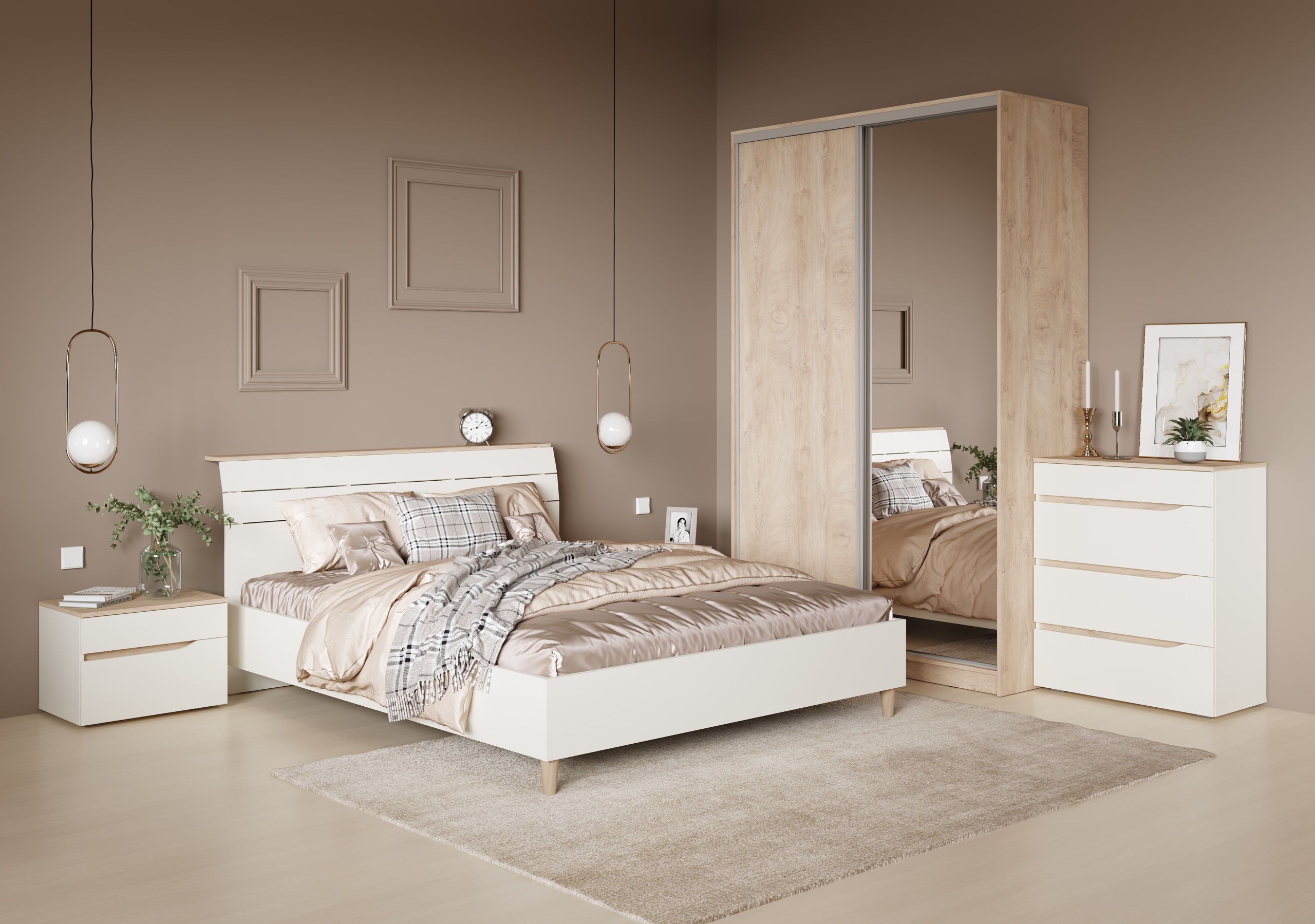 Мягкое изголовье кровати установлено с небольшим наклоном, что даёт возможность не только лежать, но и комфортно сидеть, как на диване.