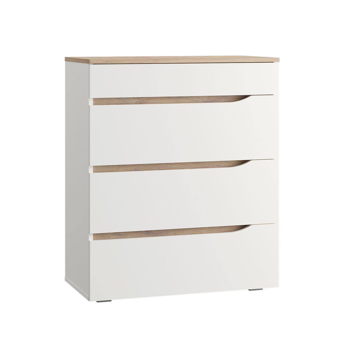 Лицевую фурнитуру заменяет стильный вырез, за которым видно древесный декор корпуса. Вырезы делают внешний вид изделий асимметричным, что делает композицию современной и динамичной.