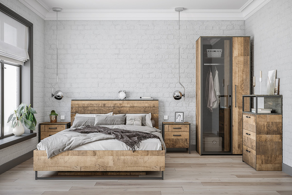 Спальня Livorno композиция 2 дуб бунратти, софт графит (кровать с ортопедическим основанием и подъемным механизмом)