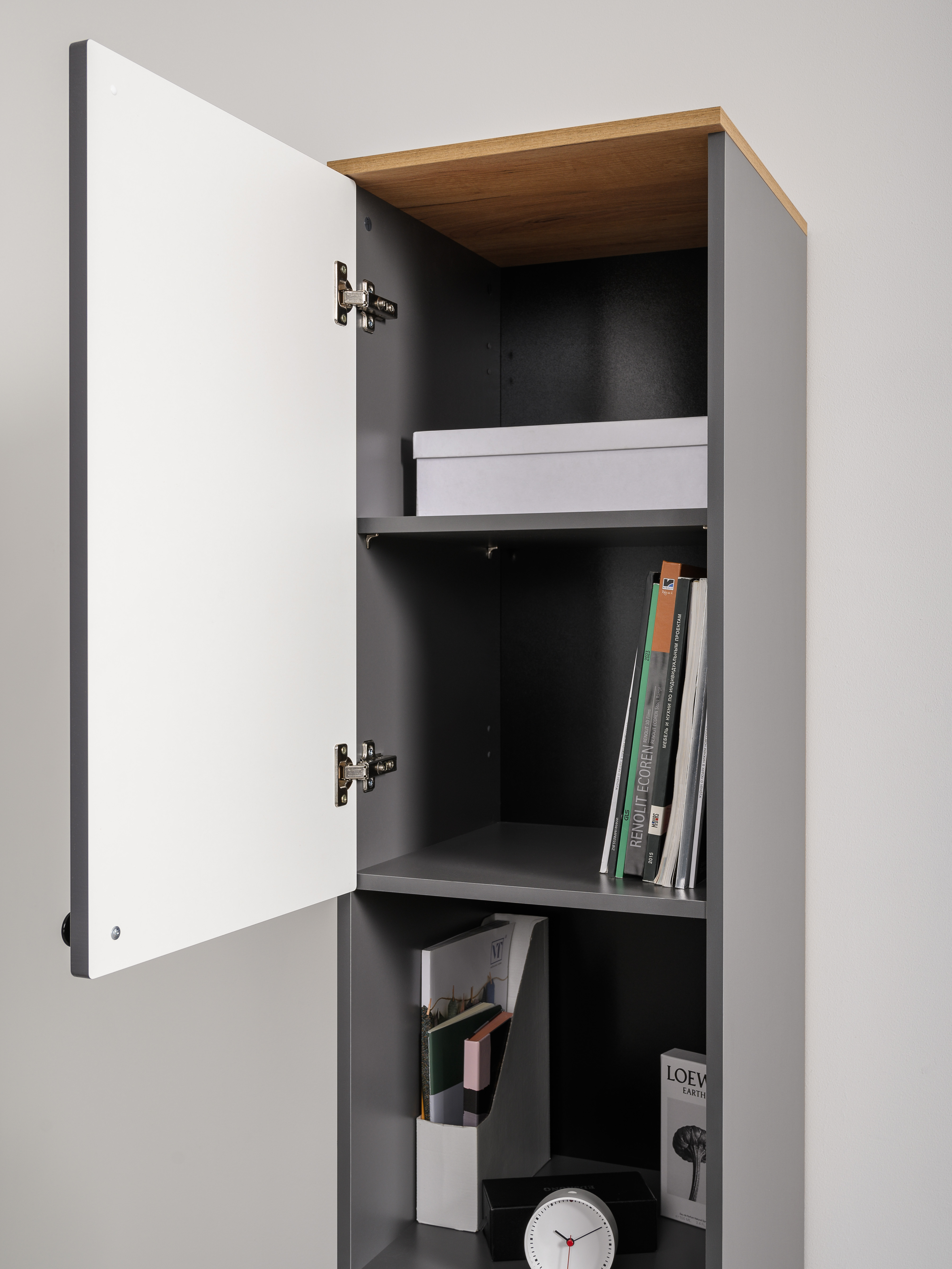 Стеллаж Остин 16.427 серый графит 0162 РЕ, дуб золотой CRAFT, графит ZB 856-2 ПВХ, сборка на любую сторону