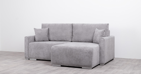 Тахта MIA левая рогожка Sherlock 975 серо-голубой, кожзам Madrit 982 коричневый