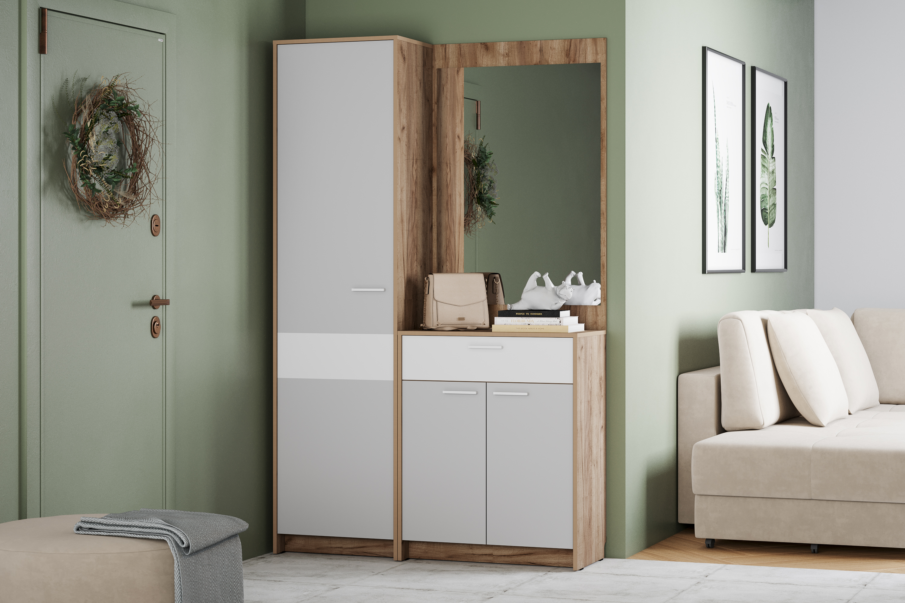 Тумба для обуви Лайн 13.234 дуб серый CRAFT, белый глянец ПВХ