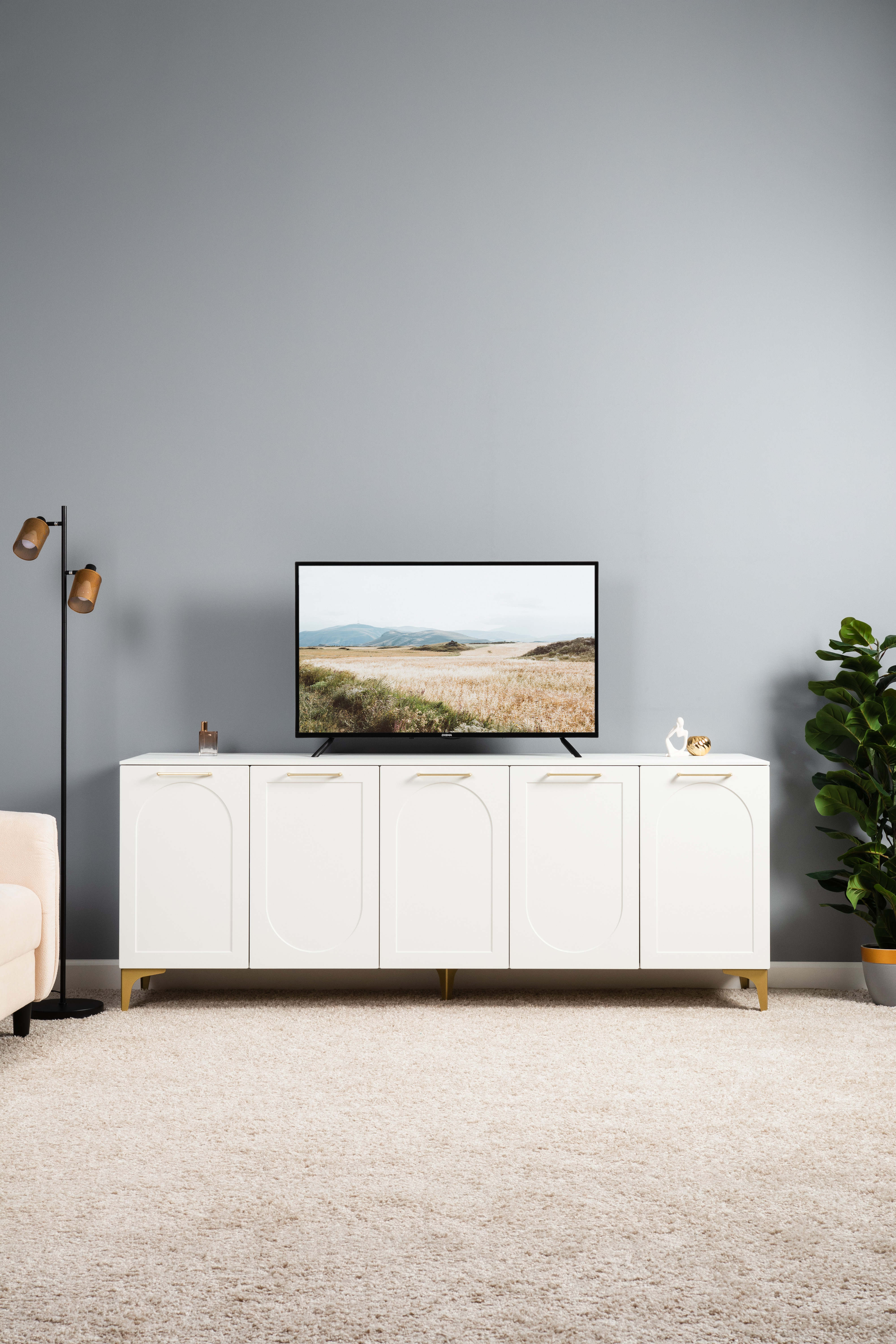Тумба под ТВ в гостиную Бэль 10.92 белый премиум, дуб золотой CRAFT