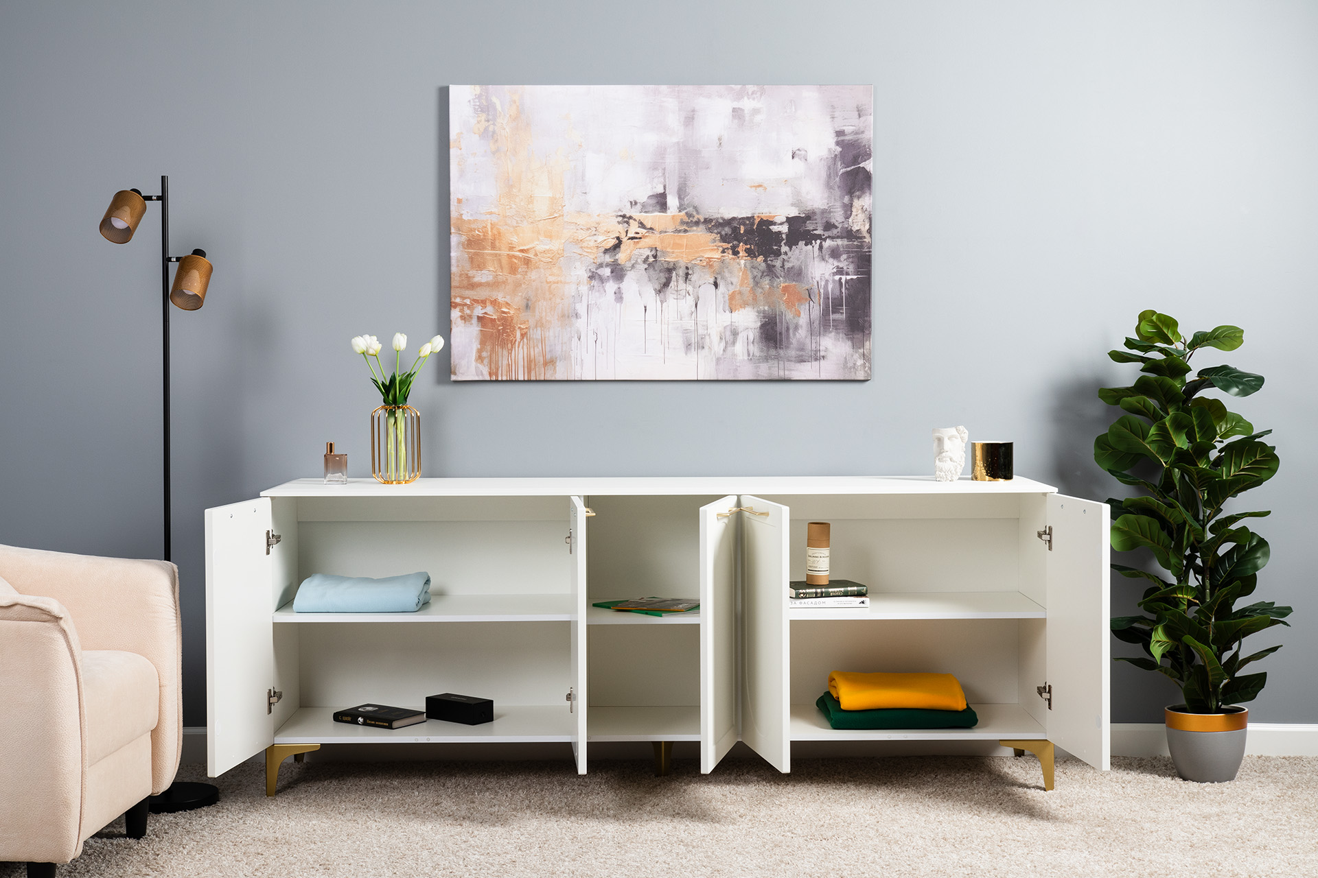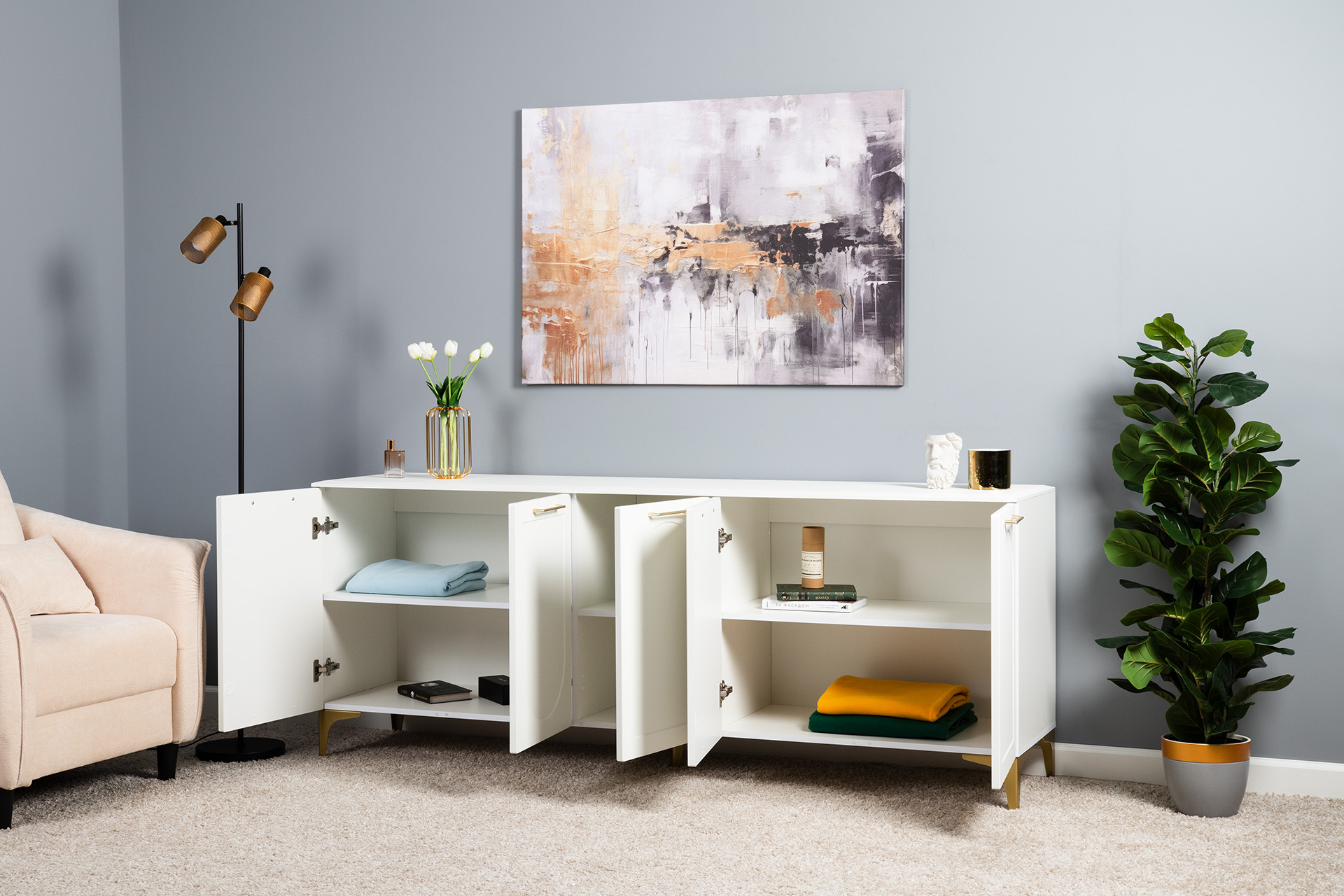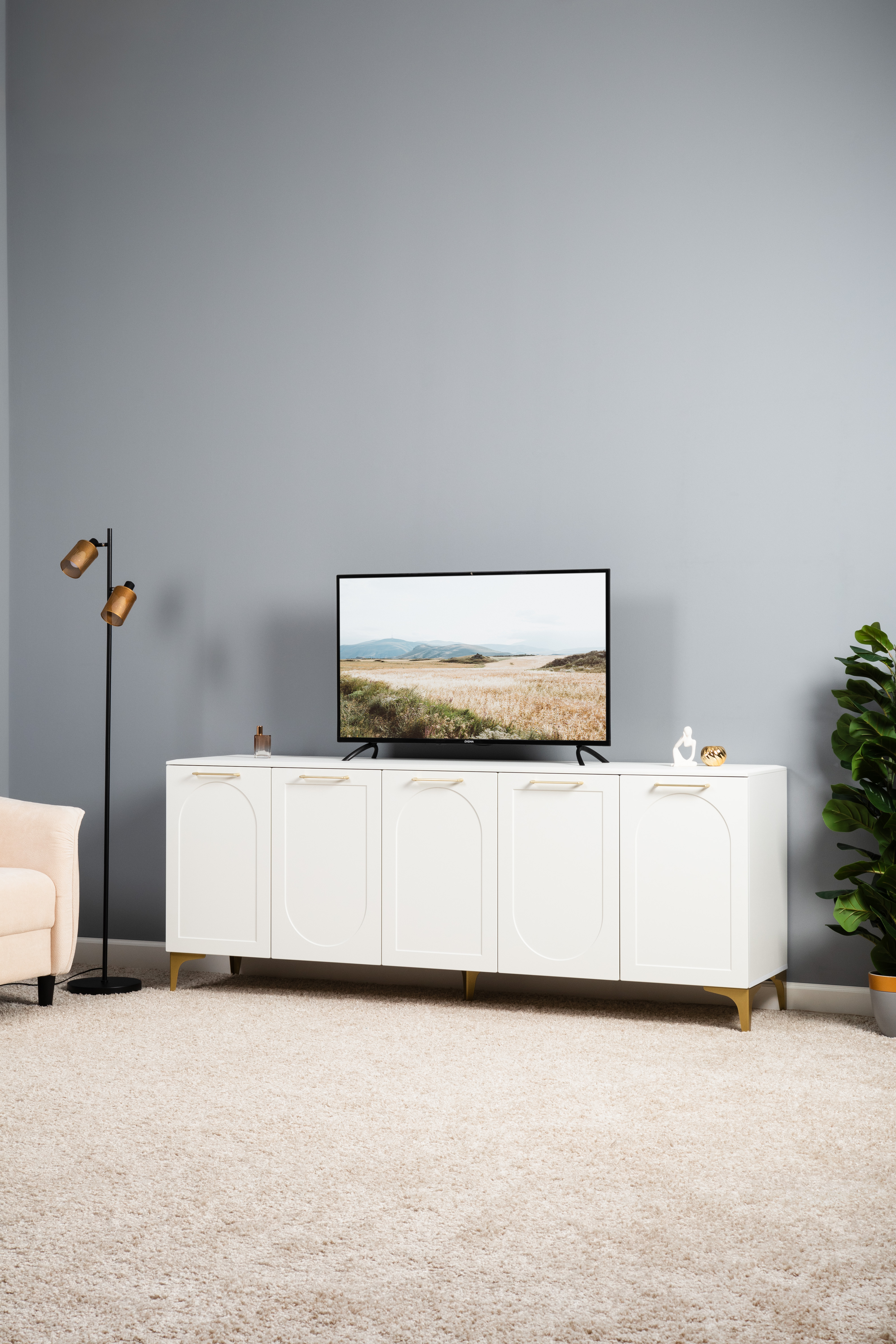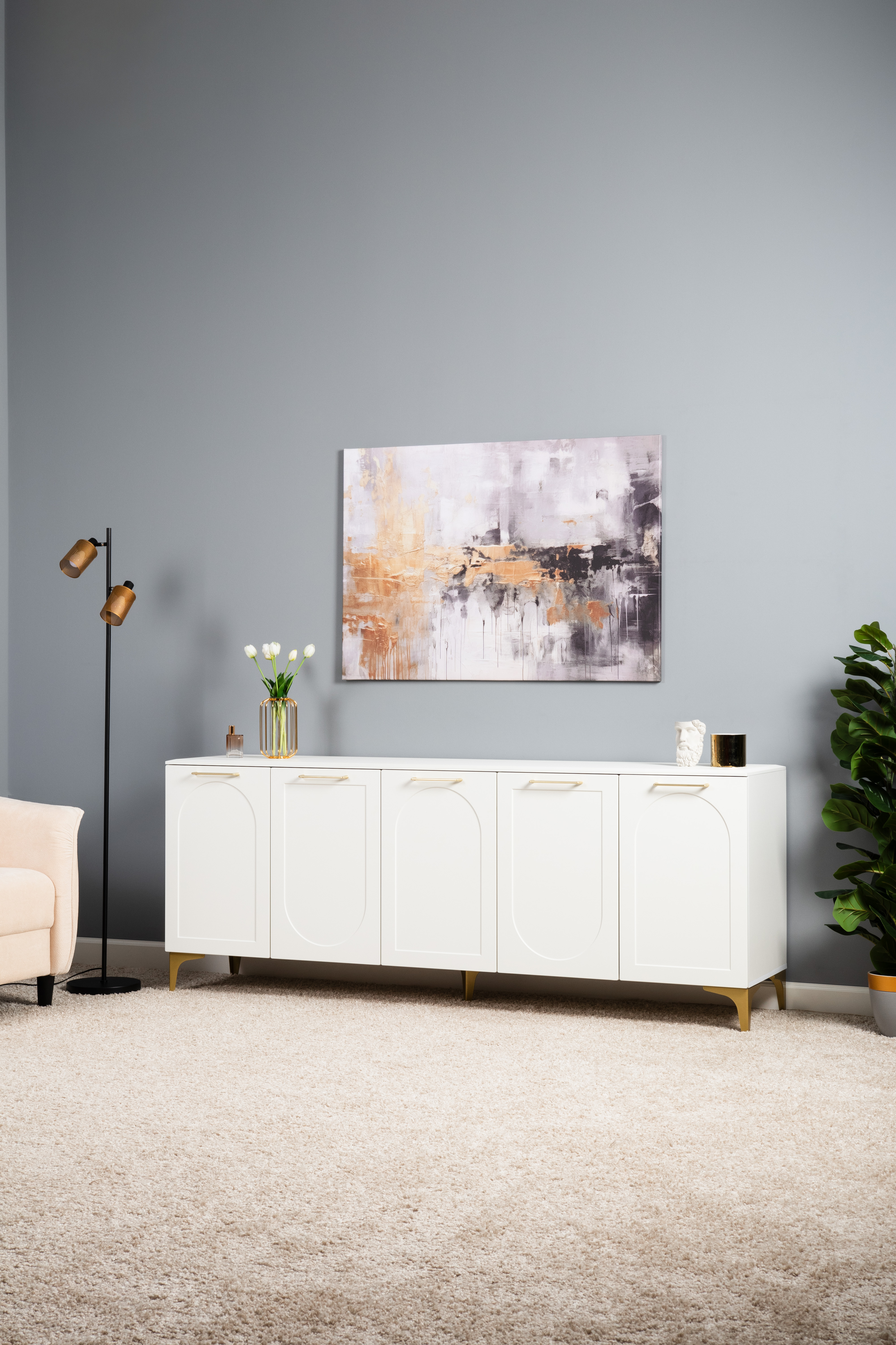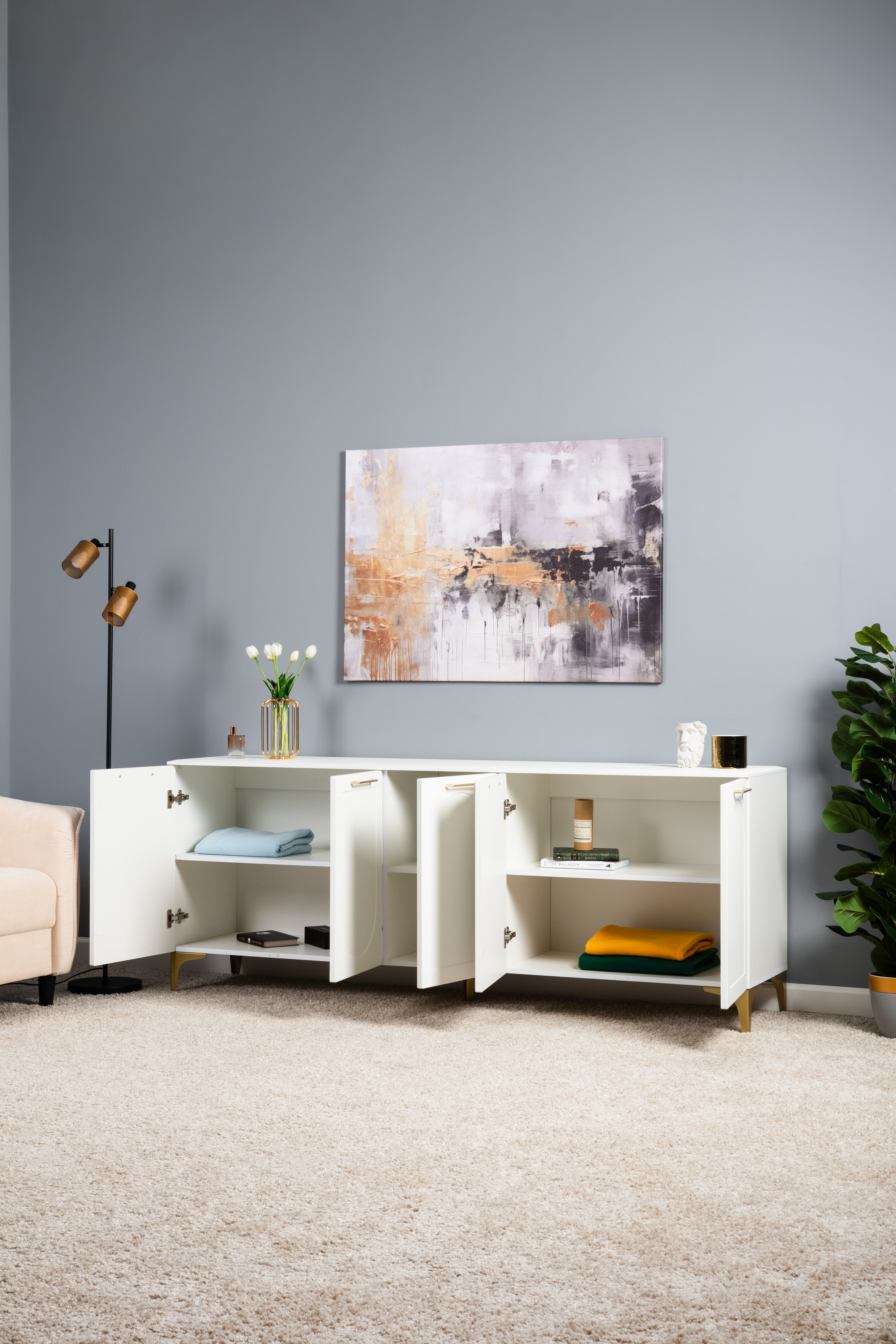 Тумба под ТВ в гостиную Бэль 10.91 белый премиум, дуб золотой CRAFT