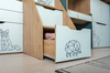"Гудвин" – это большой конструктор. В нижнем ярусе кровати-чердака можно организовать дополнительное спальное место, рабочую зону или систему хранения, подробнее этот функционал показан на видео.