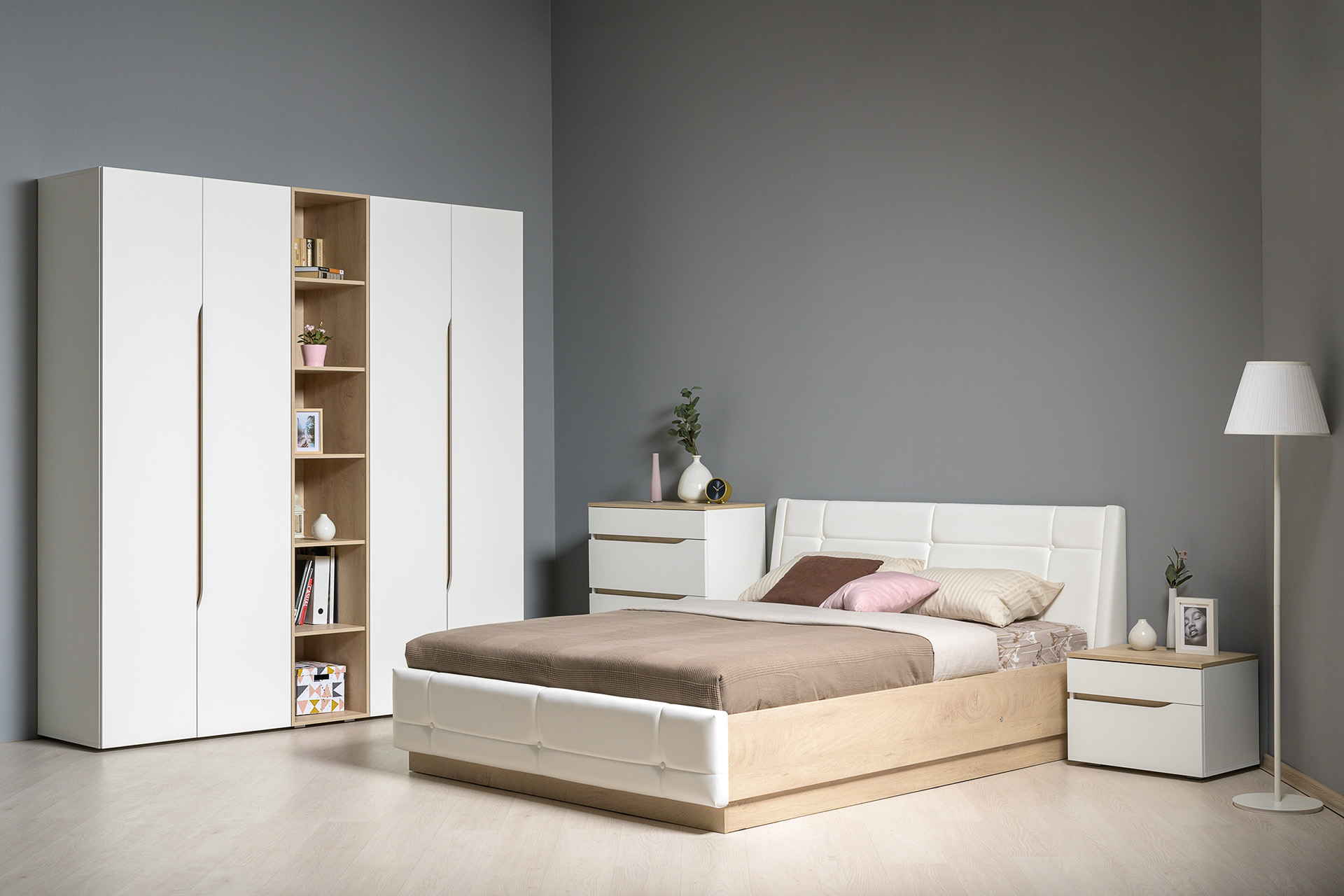 Тумба прикроватная Муссон 16.03 белый PE шагрень, дуб эндгрейн элегантный