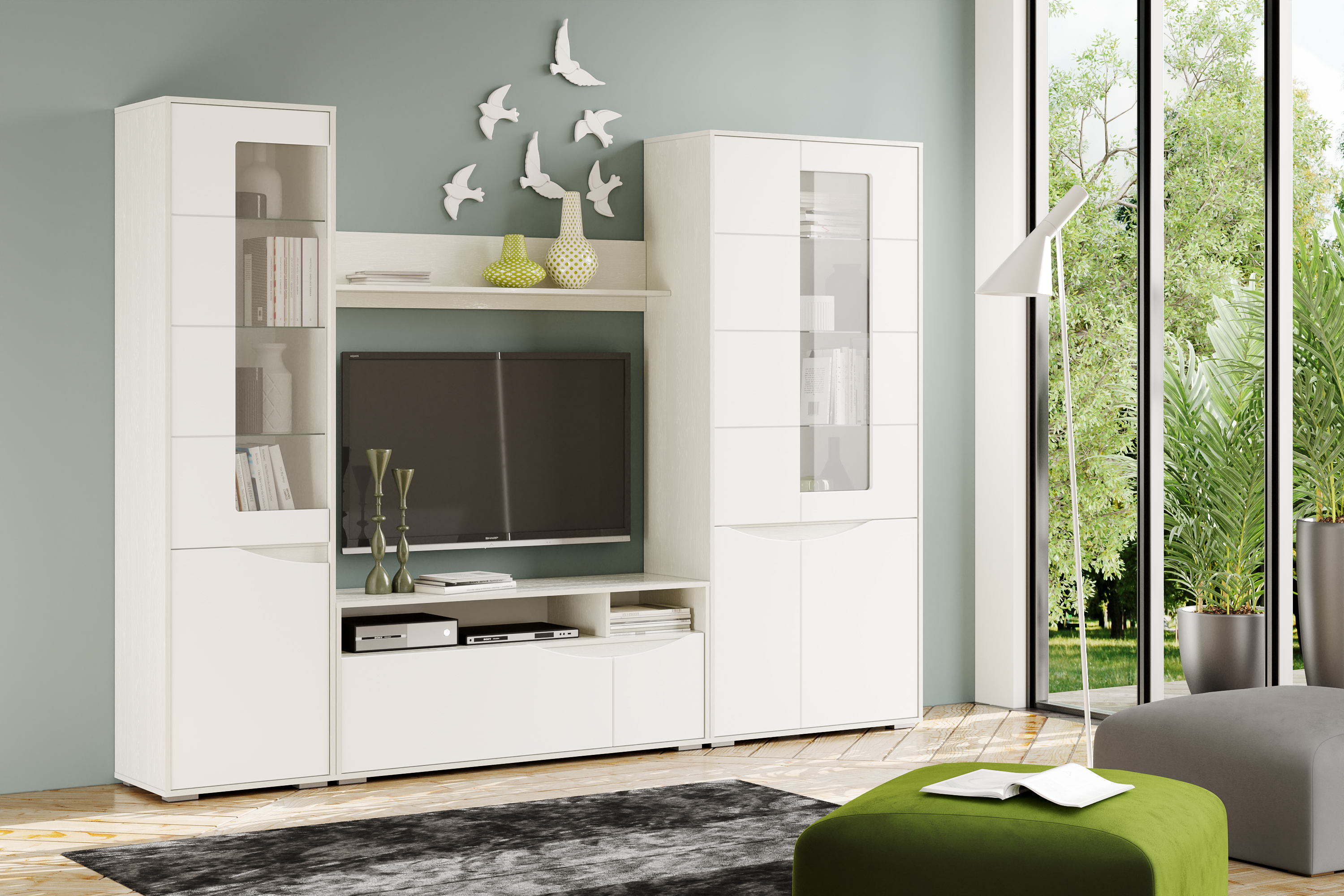 Тумба под ТВ в гостиную 13.267.03 белый PE шагрень, альберо, милк софт ПВХ